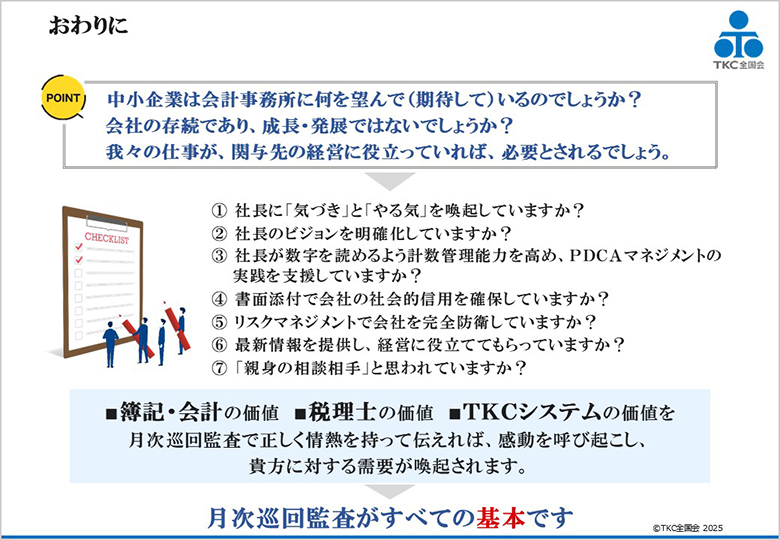 この観点から、TKC全国会では月次巡回監査の実施関与先の拡大に全力で取り組んでいます。