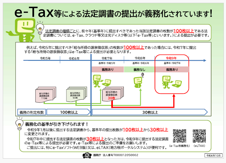 国税庁「e-Tax等による法定調書の提出が義務化されています(チラシ)(令和6年10月)