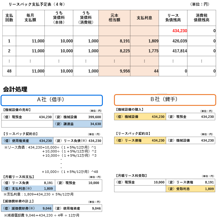 - (1) A社(借手)は、自己所有の工場機械設備を新規の設備投資の資金を得る目的で、以下の(3)の条件によりB社(貸手)に譲渡するとともに、その資産をA社にリースバックした。