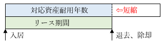 - ②対応資産の償却期間がリース期間より長い場合に、対応資産償却期間をリース期間に合わせる