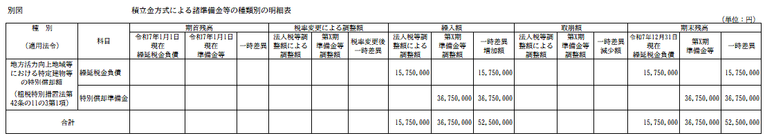 結論としては、「積立金方式による諸準備金等の種類別の明細書」を法人税申告書に添付することで税効果相当分も含めた特別償却の全額を特別償却準備金に積み立てたものとして損金算入が出来ます。