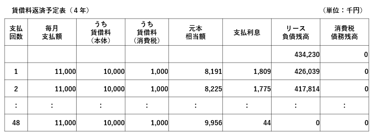 - 月額賃借料は11,000千円(税込)で、4年間金額に変更は無し。