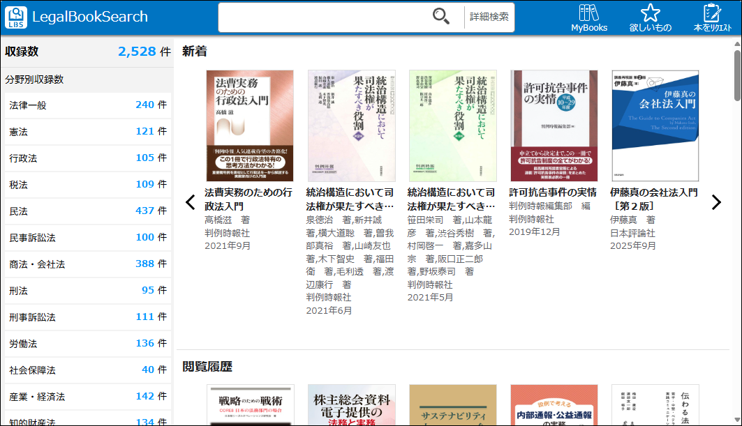 ※MyBooks(ユーザ書棚)に登録した書籍はLegalBookSearch契約中は継続して閲覧できます。