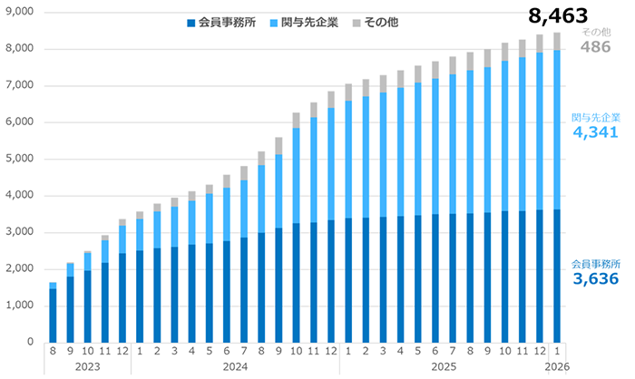 令和8年1月30日(金)現在、TKCのPeppolアクセスポイントは、8,463社に利用いただいています。