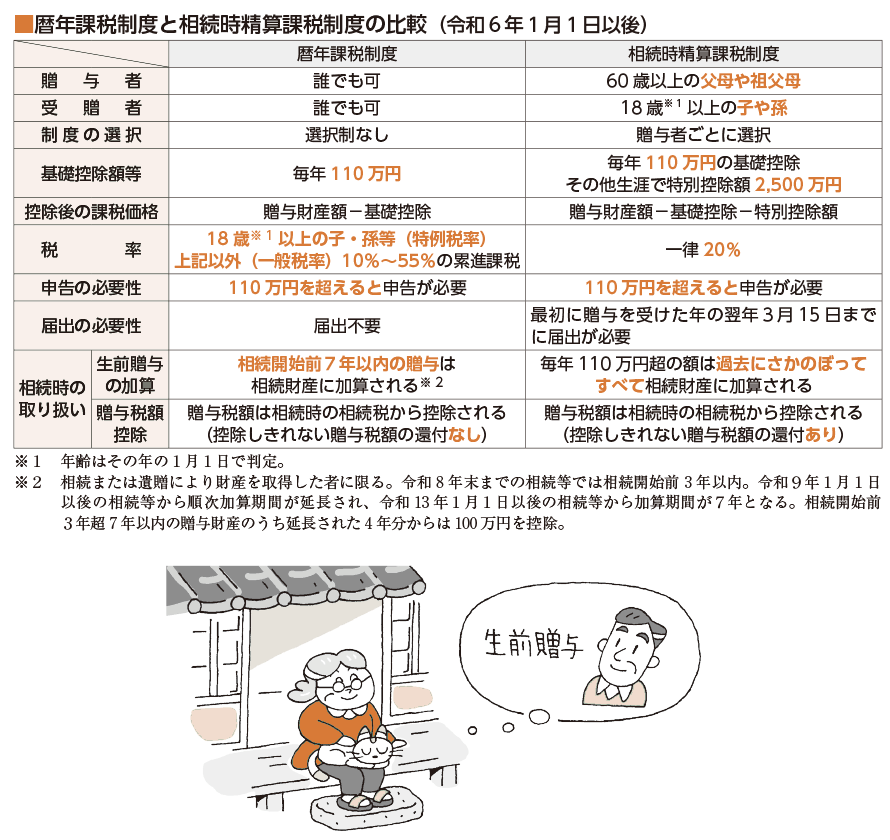 贈与税の課税方法には「暦年課税制度」と「相続時精算課税制度」の2つがあり、受贈者は贈与した人(贈与者)ごとに課税方法を選択できます。