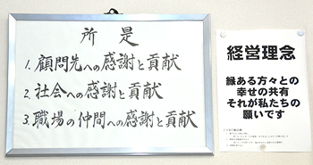 このように職員育成に力を入れているのは、もし何かあって職員が転職したとき、どこでも通用するようになってほしいという思いがあるからです。事務所の経営理念は「縁ある方々との幸せの共有、それが私たちの願いです」なのですが、そこには当然職員も含まれます。