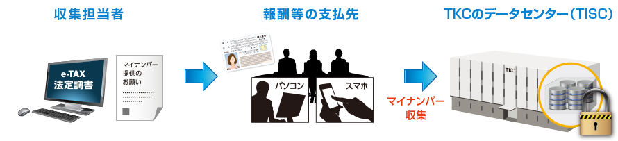 e-TAX法定調書で支払調書の電子申告データを作成する際、TISCで管理する支払先のマイナンバーを利用できます。e-TAX法定調書では、税務署等へ送信後の電子申告データを削除するため、マイナンバーの利用による漏洩リスクを低減できます。