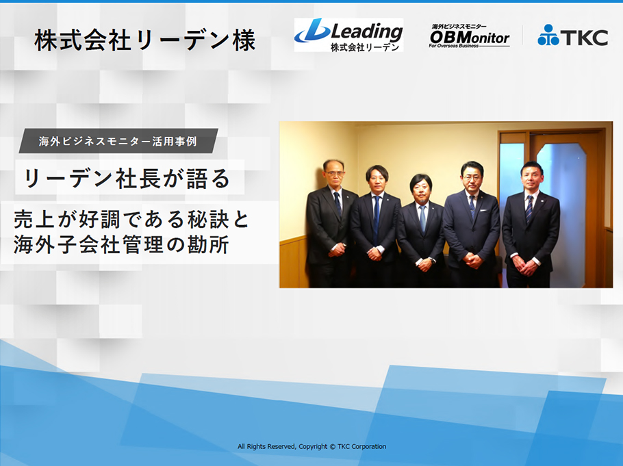 株式会社リーデン様の海外ビジネスモニター活用事例です。海外子会社の業績管理体制強化の参考としてお役立てください。