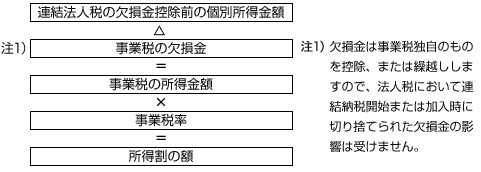 ポイントは、事業税の欠損金の取扱で、連結納税の影響は受けず、事業税は我が道を行くということです。また、外形標準課税の取扱いについては、単体申告と同様に各連結法人毎に適用判定を行った上で計算されます。