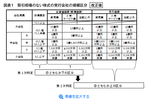 - ①大会社・中会社(大・中・小)の範囲が総じて拡大された