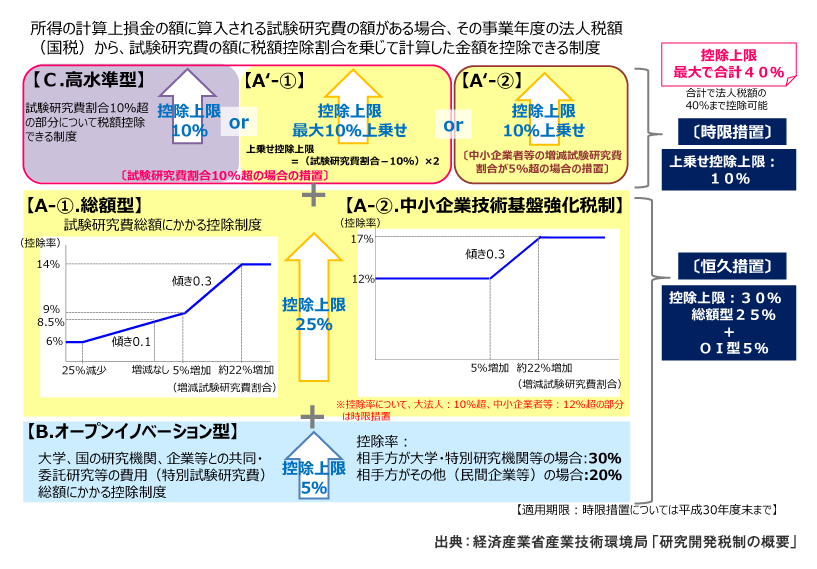 一方で総額型は、控除率が試験研究費の増減率に応じて変動する仕組みとなり、控除限度額についても最大で10%上乗せになるなど“増加インセンティブ”の要素が組み込まれることになりました。(措法42の4①)