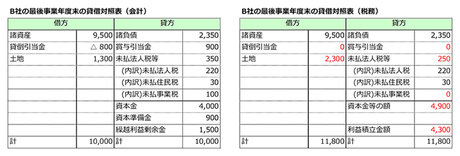- ② A社が保有するB社株式の会計上の簿価は3,000、税務上の簿価は3,700です。