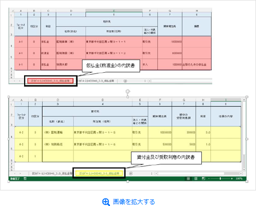 (2) 「仮払金(前渡金)の内訳書、貸付金及び受取利息の内訳書」「仮受金(前受金・預り金)の内訳書、源泉所得税預り金の内訳」などの場合