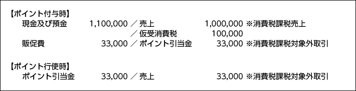 また、ポイント行使時においては、商品販売時に課税売上が計上されていることから、ポイント行使に伴う販売代金分は不課税売上高となります。