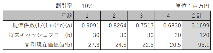 今100万円投資すると、毎年4年間30万円のリターンがあるプロジェクトに投資しますか?