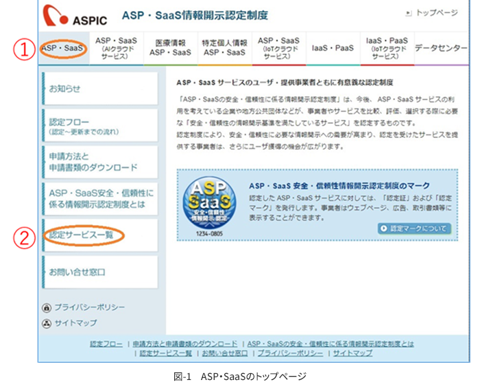 (※図-1は、分野として「ASP・SaaS」タブを選択、当該分類のトップページを表示したもの)