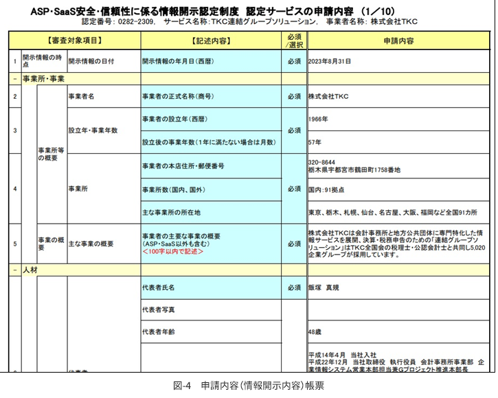 (※図-4では、「TKC連結グループソリューション」の申請内容(=開示情報)の帳票を表示しているところ)