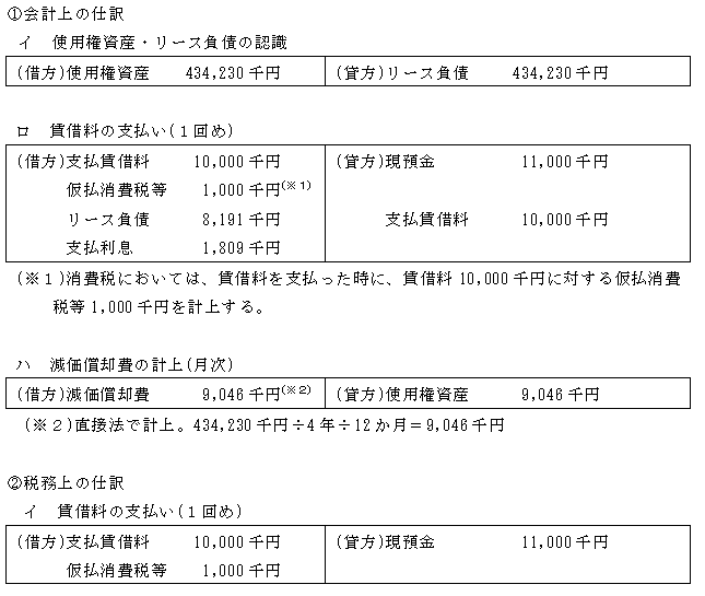 新リース会計基準が適用された際に、オペレーティング・リース取引についての申告調整がどのようになるか、設例を用いて考えてみます。会計処理においてどのように仕訳を計上するかについては様々な考え方がありますが、ここでは一例として確認していきます。