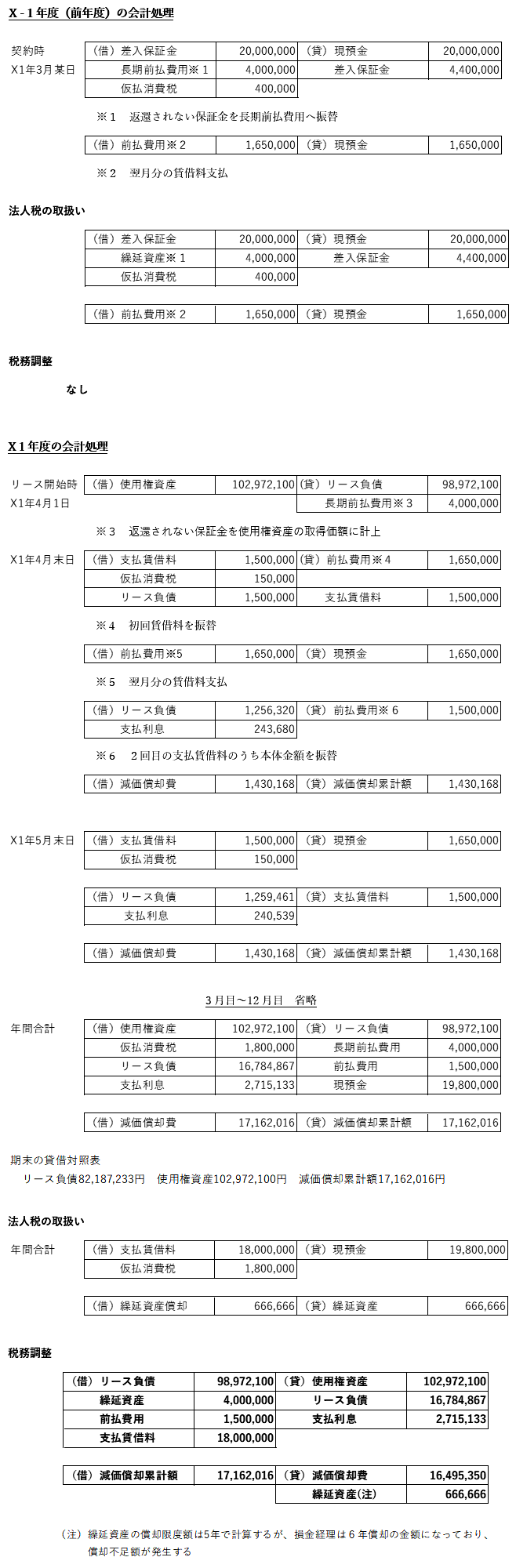 - 保証金差入及び初回賃借料支払日:X-1年3月某日