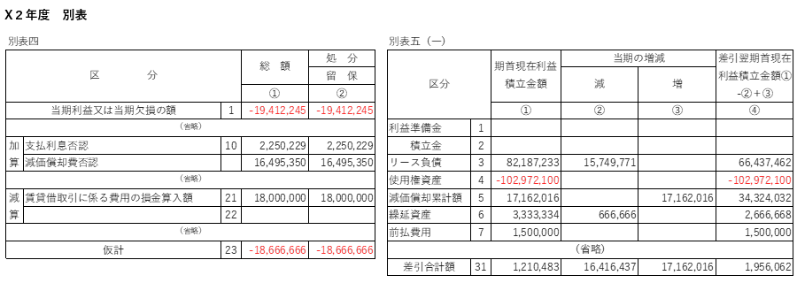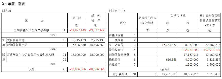 - 不動産リースにおける別表調整