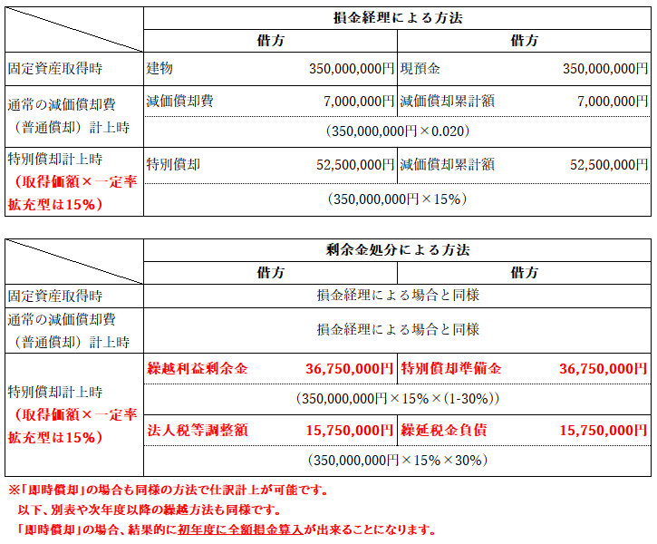 - ① 通常の減価償却費(普通償却)と同様に損益計算書上の減価償却に含めて計算する方法