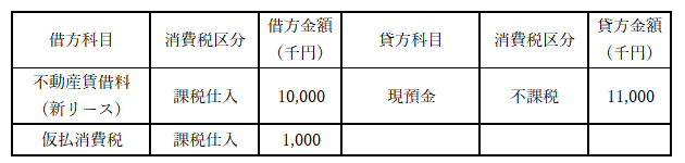 不動産賃貸借取引は税務上賃貸借取引であるため、リース料支払時に仮払消費税を計上します。