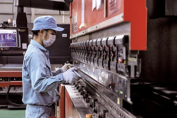 伊東 一気通貫で板金加工ができる体制を整えてきたのが大きいと思います。板金加工はブランク・曲げ、溶接、さらには塗装とおおむね3つの工程に分かれますが、当社では、溶接の工程に30名の技術者がおります。これは中小企業としてはかなり多いと思います。製品に使用するステンレス鋼板は板厚が薄く、熱ですぐに曲がったり穴が開いたりするので、溶接はとても難しい作業になります。昨今は溶接のできる技術者は少なく、なかなか集まりません。当社は工程の全技術者の半分近くが溶接部門に集まっており、しかも高い技術を持っています。ここが特徴であり強みです。