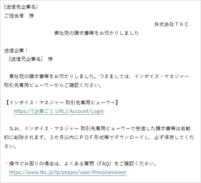 件名:【インボイス・マネジャー 取引先専用ビューワー】(送信元企業)様から貴社宛の請求書等をお預かりしました