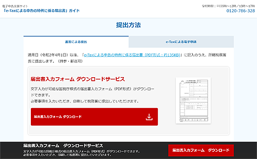 こうした状況を踏まえて、「届出書のポイント」「提出方法」「届出書の書き方」などを解説した特設ホームページを公開しました。そこには、「届出書入力フォーム」を無料でダウンロードできる機能も設けています。パソコンにダウンロードし、既定のフォームに必要事項を入力していくだけで、当該届出書を簡単に作成することができます。