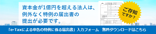 資本金が1億円を超える法人は、電子申告専用の届出書の提出が必要です―「e-Taxによる申告の特例に係る届出書」の作成支援ページを公開―