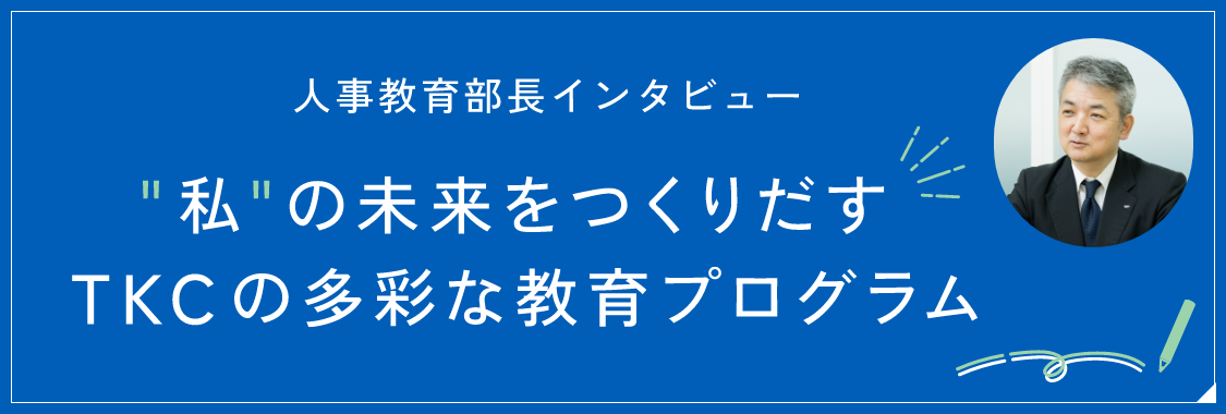 TKCを知る 会社概要 当社のビジネスモデルや強み、理念等をご説明します。 数字で見るTKC 当社の「顧客への貢献」を数字でご紹介します。 社員アンケート 入社2年目社員のリアルな声をお届けします。 事業紹介 会計事務所向け事業 会計事務所支援を通して中小企業の活力を創出 地方公共団体向け事業 地方公共団体のDXで社会システムを改善 その他の事業 中堅・大企業向け事業と法律専門家・法科大学院向け事業 職種紹介 開発職 専門家、実務家であるお客さまの声を聞き、お客さまにとって最適なシステムを開発 コンサルティング職 導入して終わりではなく、お客さまの事業の成長・発展のために継続したサポート 社員紹介 充実した教育・研修制度でレベルアップ地方公共団体事業を通して社会に貢献 コンサルティング職 2021年入社 地方公共団体事業部 顧客に寄り添い、役立つことがモチベーションの源泉になる コンサルティング職 2021年入社 会計事務所事業部 会計事務所向けシステムの開発職にゼロから挑戦理想的な環境で精力的にスキルアップ 開発職 2020年入社 会計事務所事業部 文系出身、プログラミング未経験ながらも地方公共団体向けシステム開発で活躍 開発職 2021年入社 地方公共団体事業部 OJT対談 トレーナーとトレーニーがOJT期間を経て、おたがいの成長を確認 コンサルティング職 2019年入社 × 2022年入社 会計事務所事業部 リーダインタビュー リーダとしての使命に向き合いながら自分自身の夢に向かって成長を続ける コンサルティング職 2015年入社 会計事務所事業部 社員紹介 環境・制度 職場環境 教育・研修制度 福利厚生 採用情報 2026年度新卒向け 募集要項 2026年卒における募集要項と採用までの流れをご説明します。 2027年度新卒向け 1Day仕事体験 IT業界の仕事の流れやチームワーク等について学べる1Day仕事体験 オープン・カンパニー 1Day仕事体験と同時開催/Webで気軽に見学♪ 求める人物像 よくあるご質問