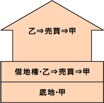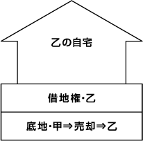- 乙の責任において、貸アパートの借家人と立退きを建物の解体工事を行うことを条件に、「甲の有する乙の自宅の底地部分」と「乙の有する貸アパート部分の借地権」とを交換する。