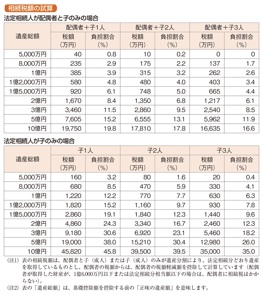 相続税は法定相続人が多いほど負担額は軽くなります。また、配偶者が取得した財産には、ほとんど相続税がかからない仕組みになっています。