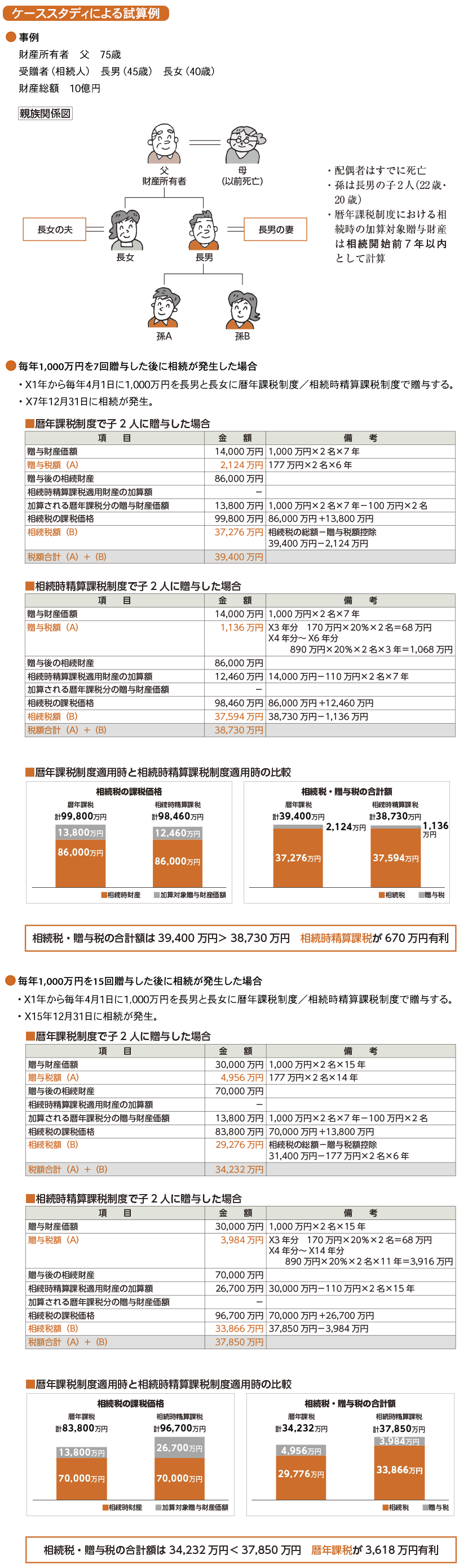生前贈与の期間が7年よりも長い場合は、財産所有者の財産総額によって有利な課税制度が左右されます。