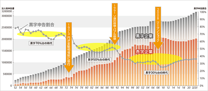 ※2004年以前は国税庁「会社標本調査結果」における数値を採用し、2005年以後は同庁「法人税等の申告事績の概要」における数値を採用しています。