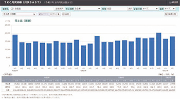 TKC全国会では、2021年4月より、「TKC月次指標」(月次BAST)の提供を開始しました。これは、TKC会員が関与する中小企業26万社超の最新の「月次決算データ」を基にした今までにない統計資料で、地域経済の動向や変化をタイムリーに把握することができます。